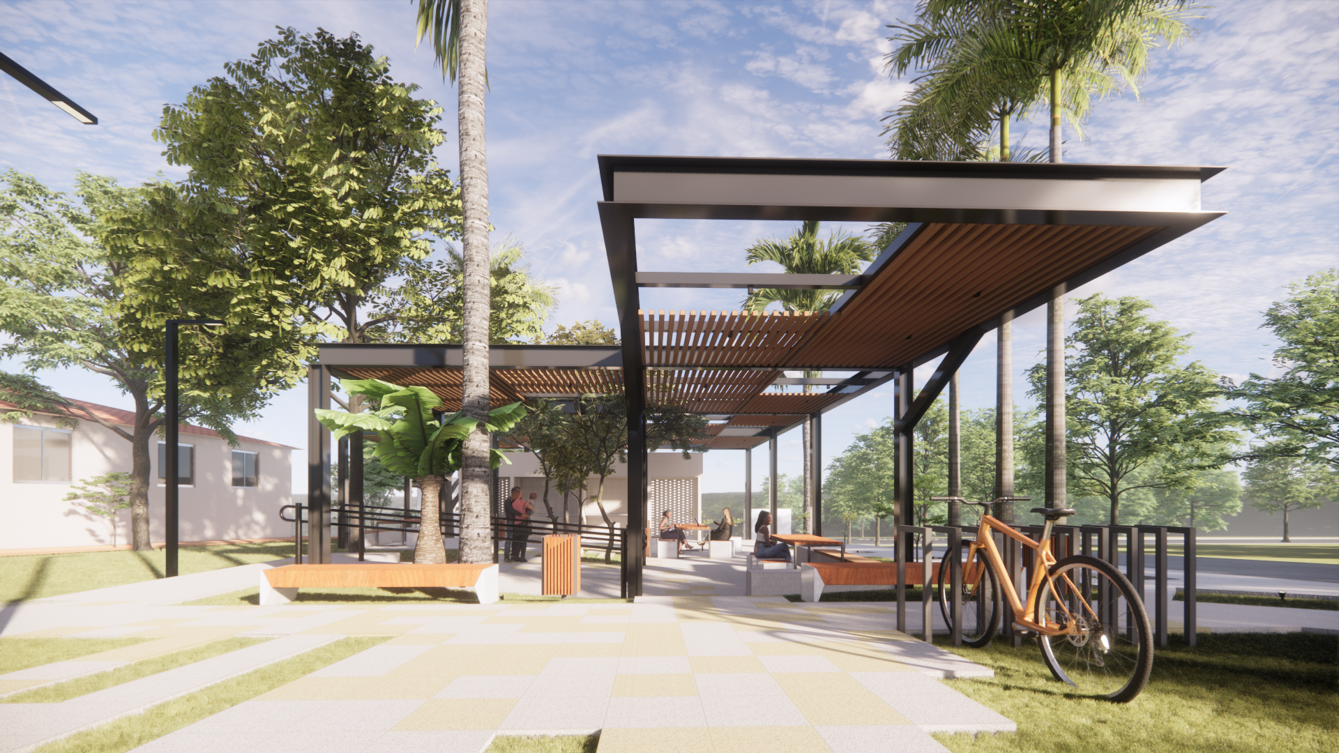 A Praça Colink responde a essa demanda com sombra, conforto e vitalidade urbana.